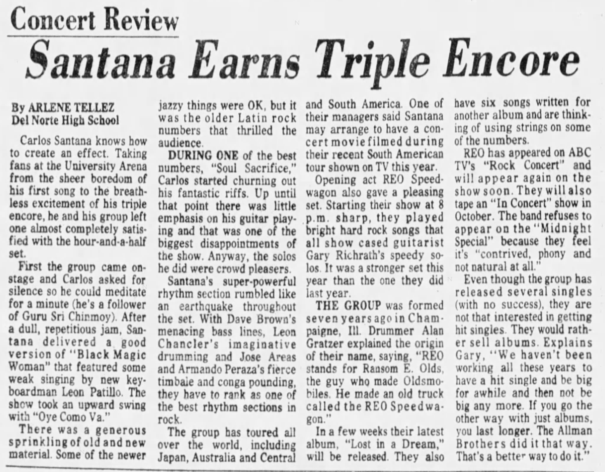 Note: Cancelled show. Santana’s drummer Michael Shrieve is hospitalized with kidney stones and the tour is delayed. The show is rescheduled for Aug 17, 1974 with Leon Russell.